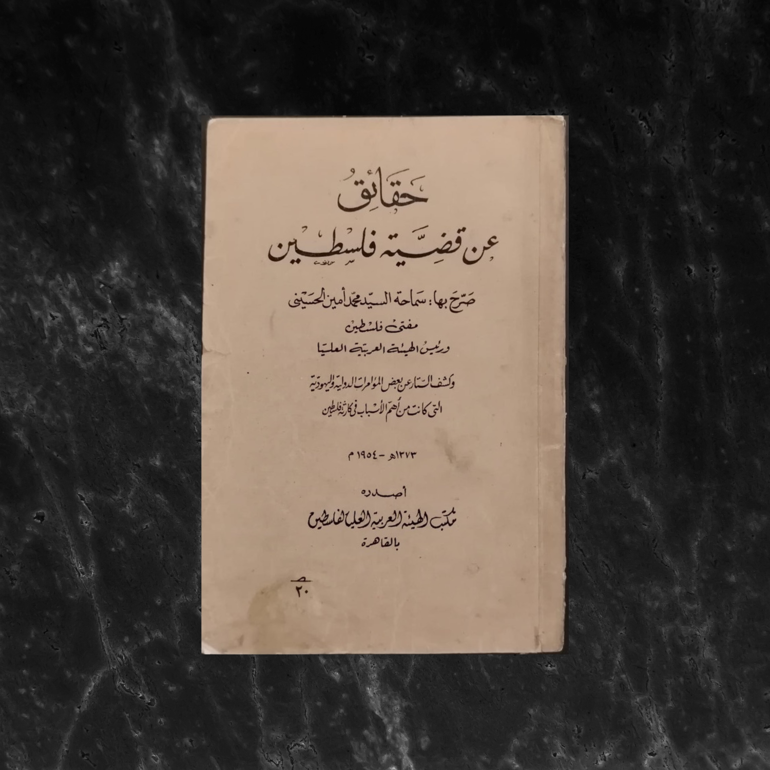حقائق عن قضية فلسطين صرح بها سماحة السيد محمد أمين الحسيني مفتي فلسطين ورئيس الهيئة العربية العليا، وكشف الستار عن بعض المؤامرات الدولية واليهودية التي كانت من أهم الأسباب في كارثة فلسطين