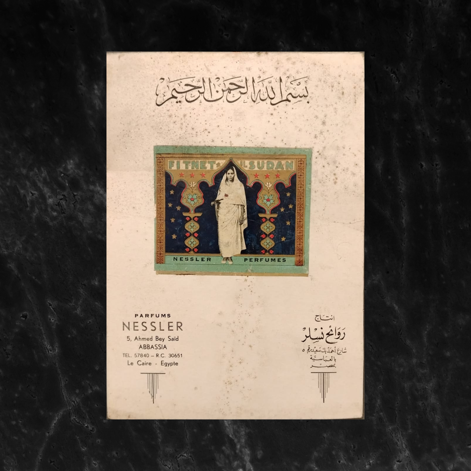 إعلان عطرور على كرتون من حوالي ١٩٣٠-١٩٤٠